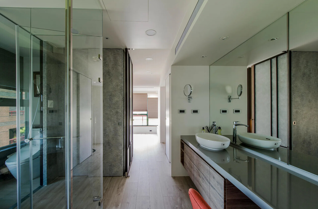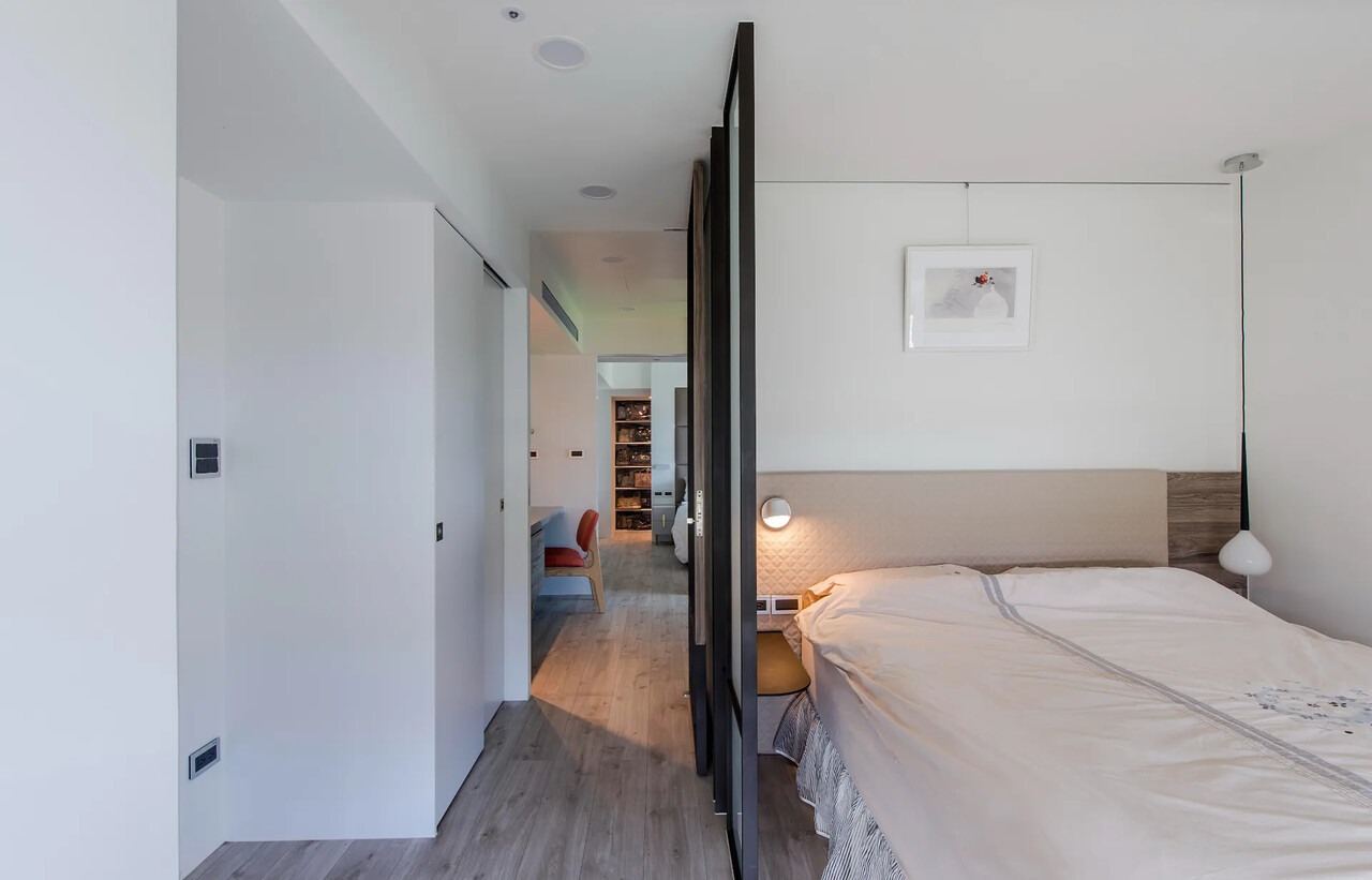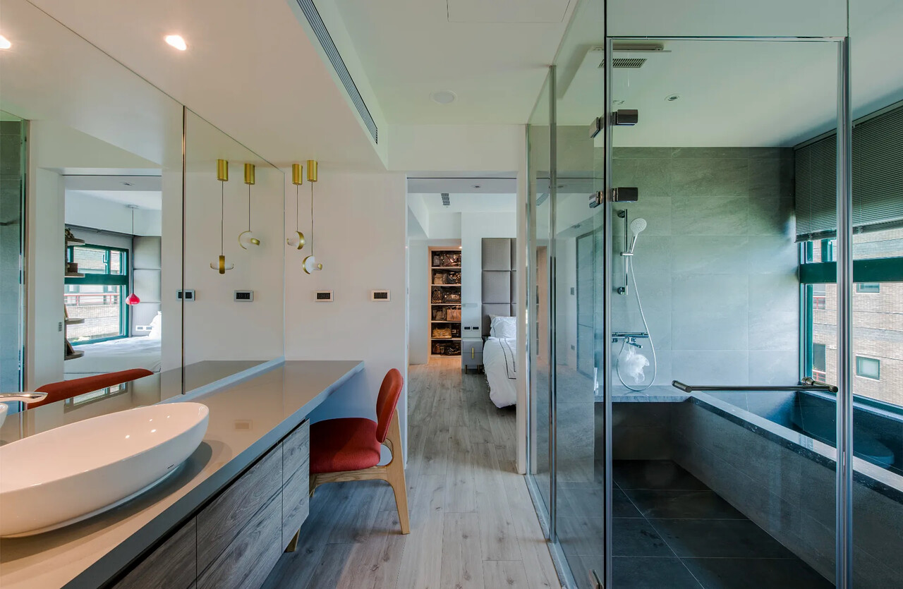 改成雙主臥的機能退休宅,中間藉由主浴走道串通兩間臥室,既保有獨立空間,又能彼此關懷