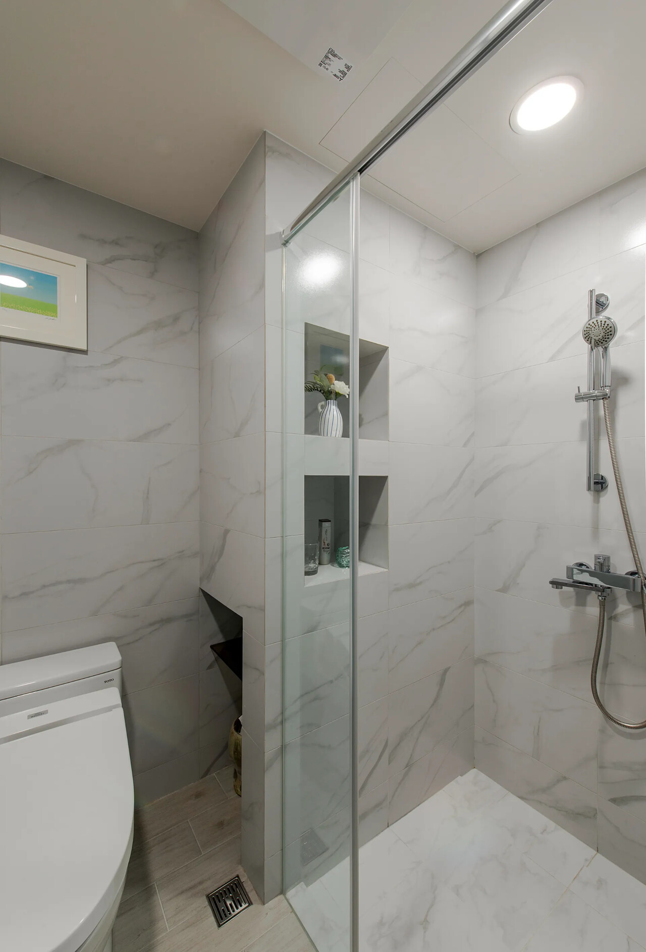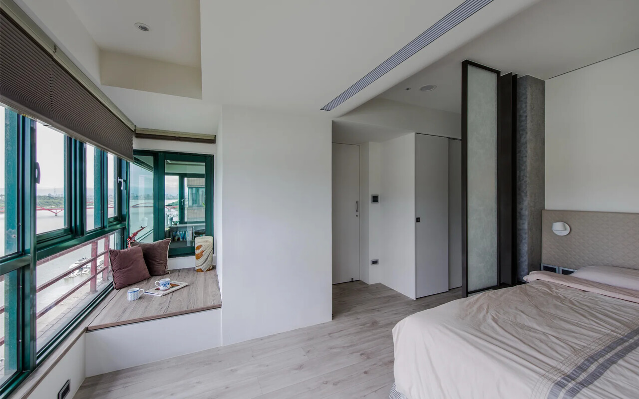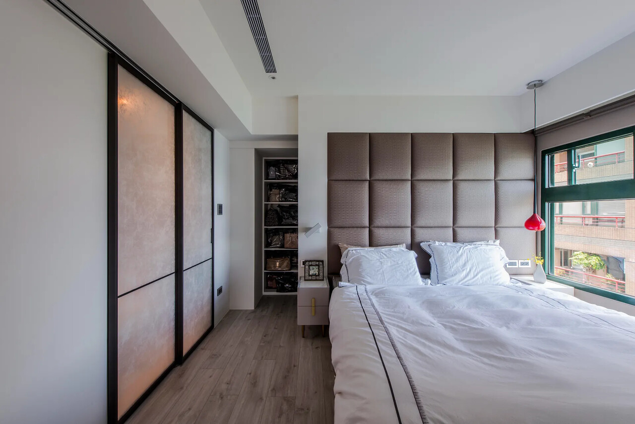 改成雙主臥的機能退休宅,中間藉由主浴走道串通兩間臥室,既保有獨立空間,又能彼此關懷