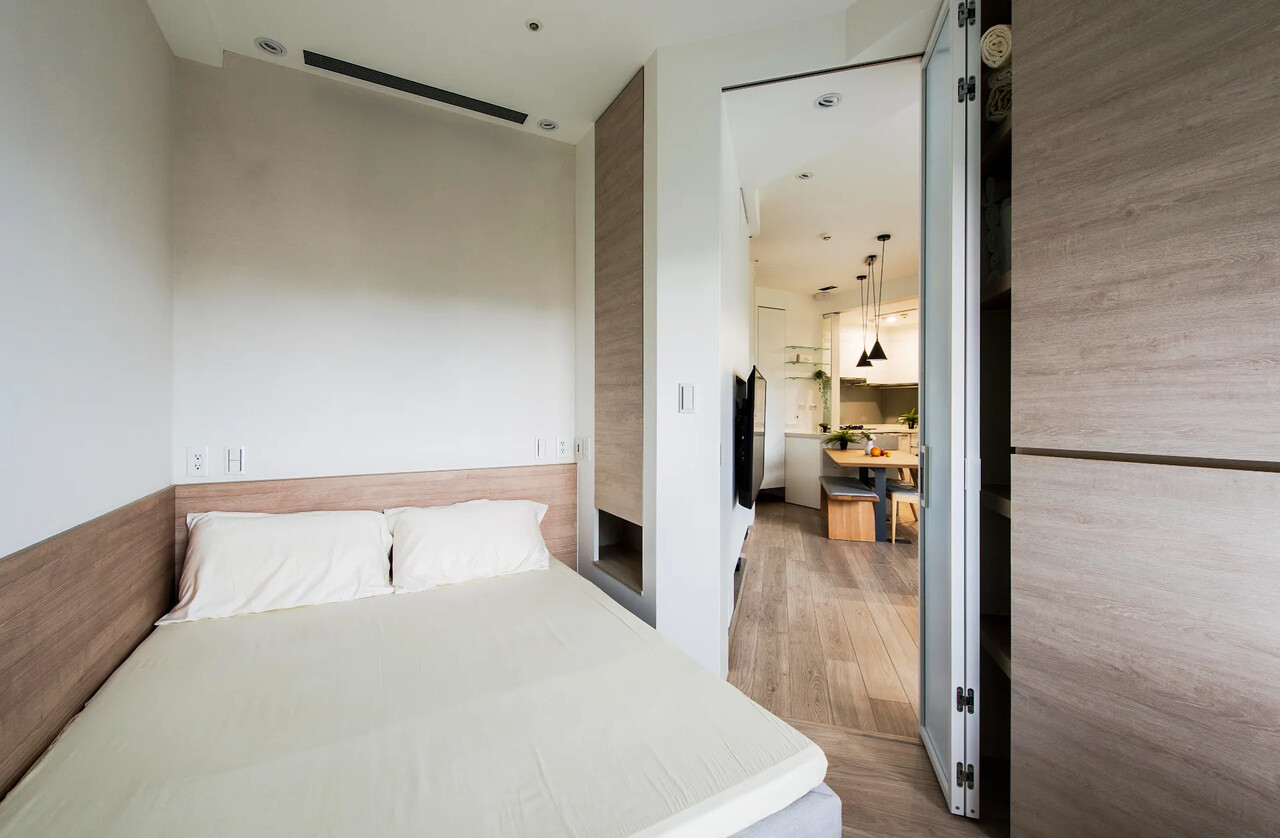 ★原先設計出Plan C,將主臥室的床放在中央,但使用者覺得床一邊靠牆,睡起來最安穩,睡眠品質更好,因此在設計上尊重使用者,將床位置靠牆邊