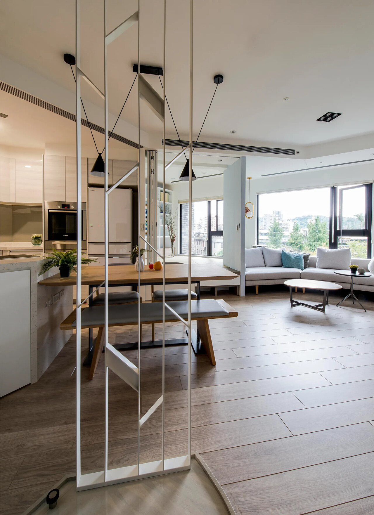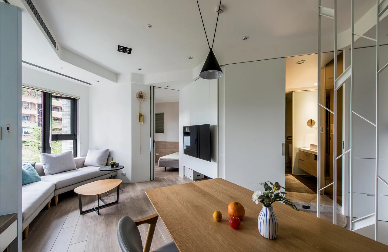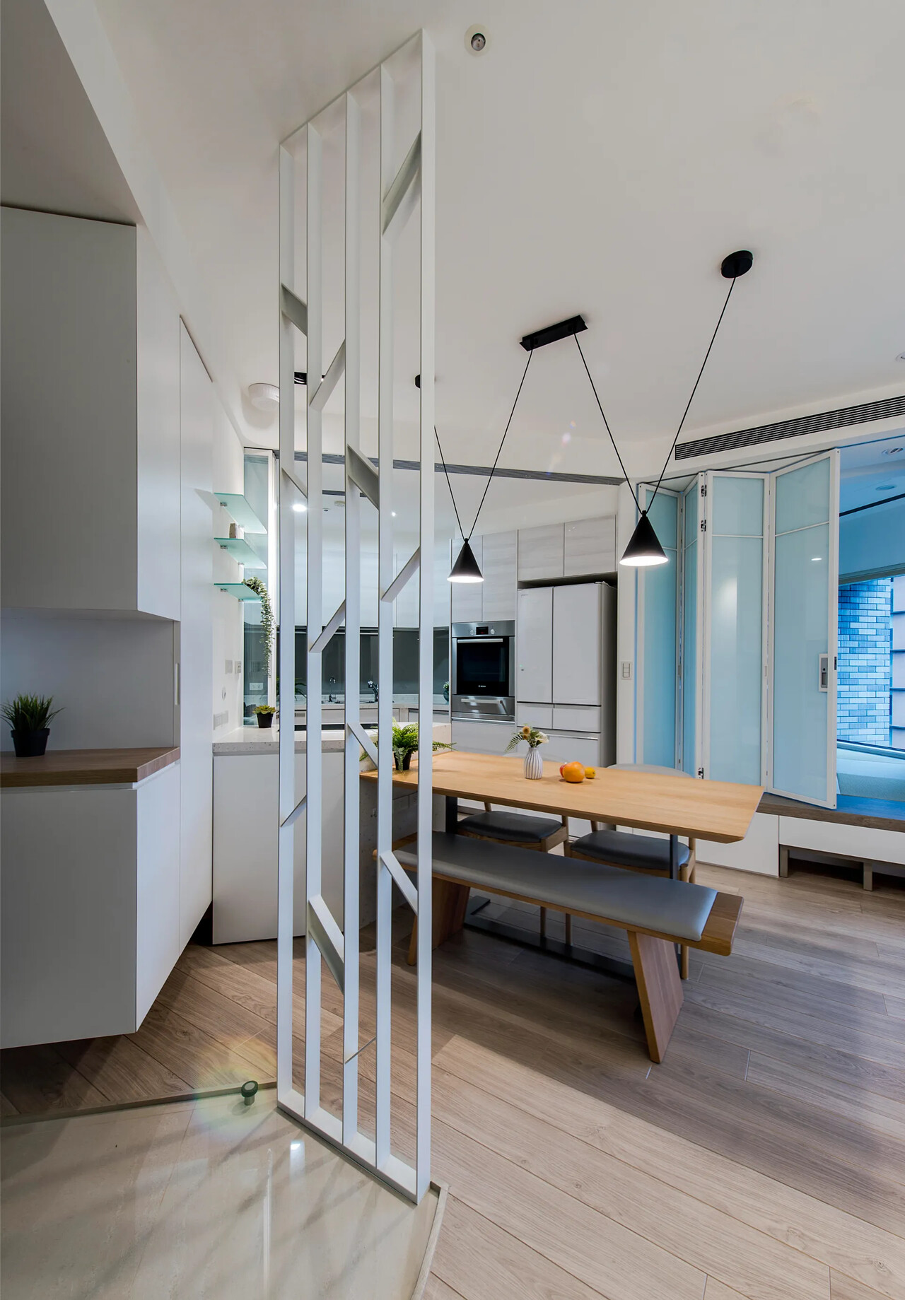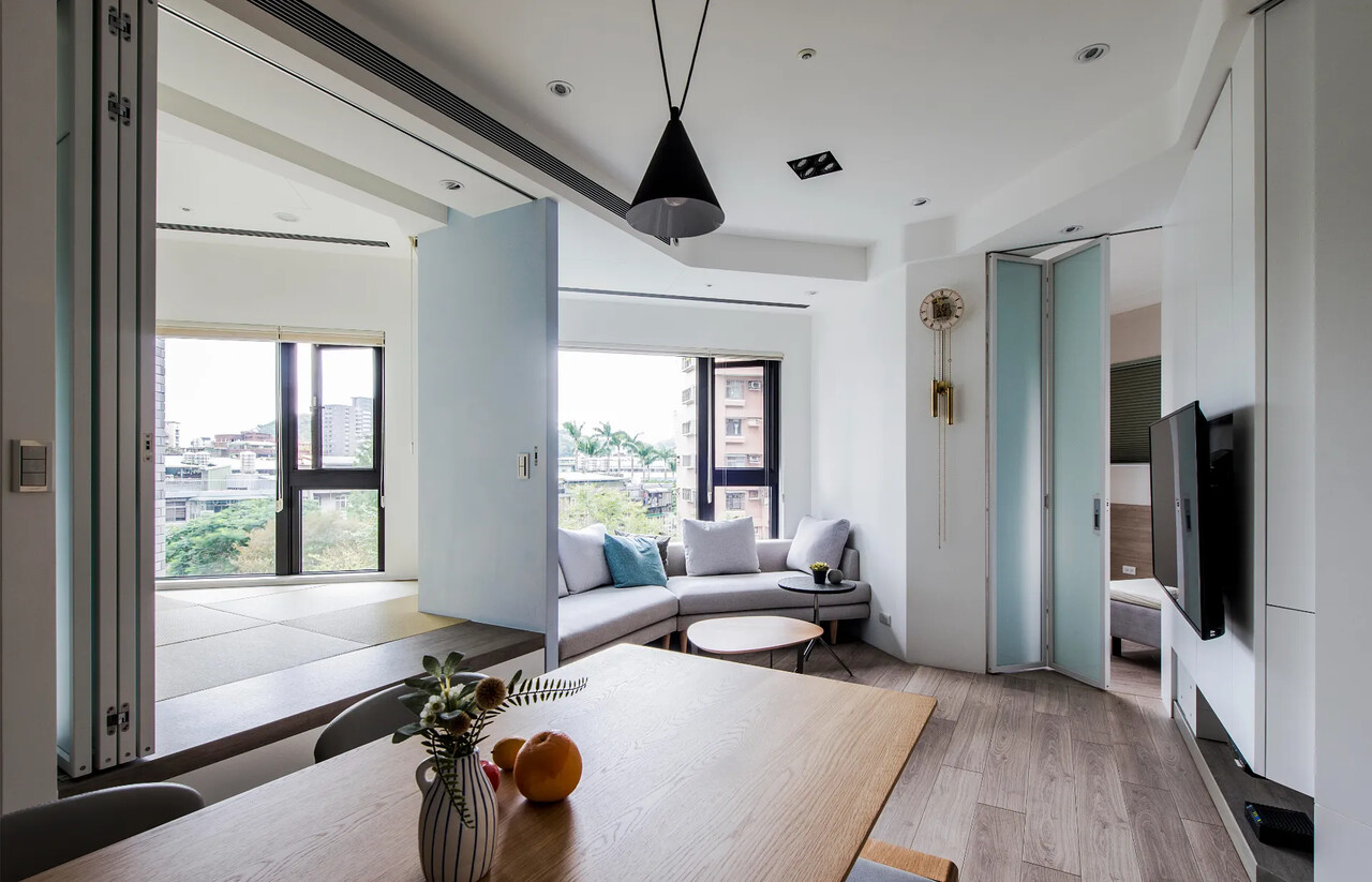 將洗手台、廁所和淋浴空間的機能獨立分離,大幅提升使用效率;並解決廁所在使用中就無法通到後陽台的問題