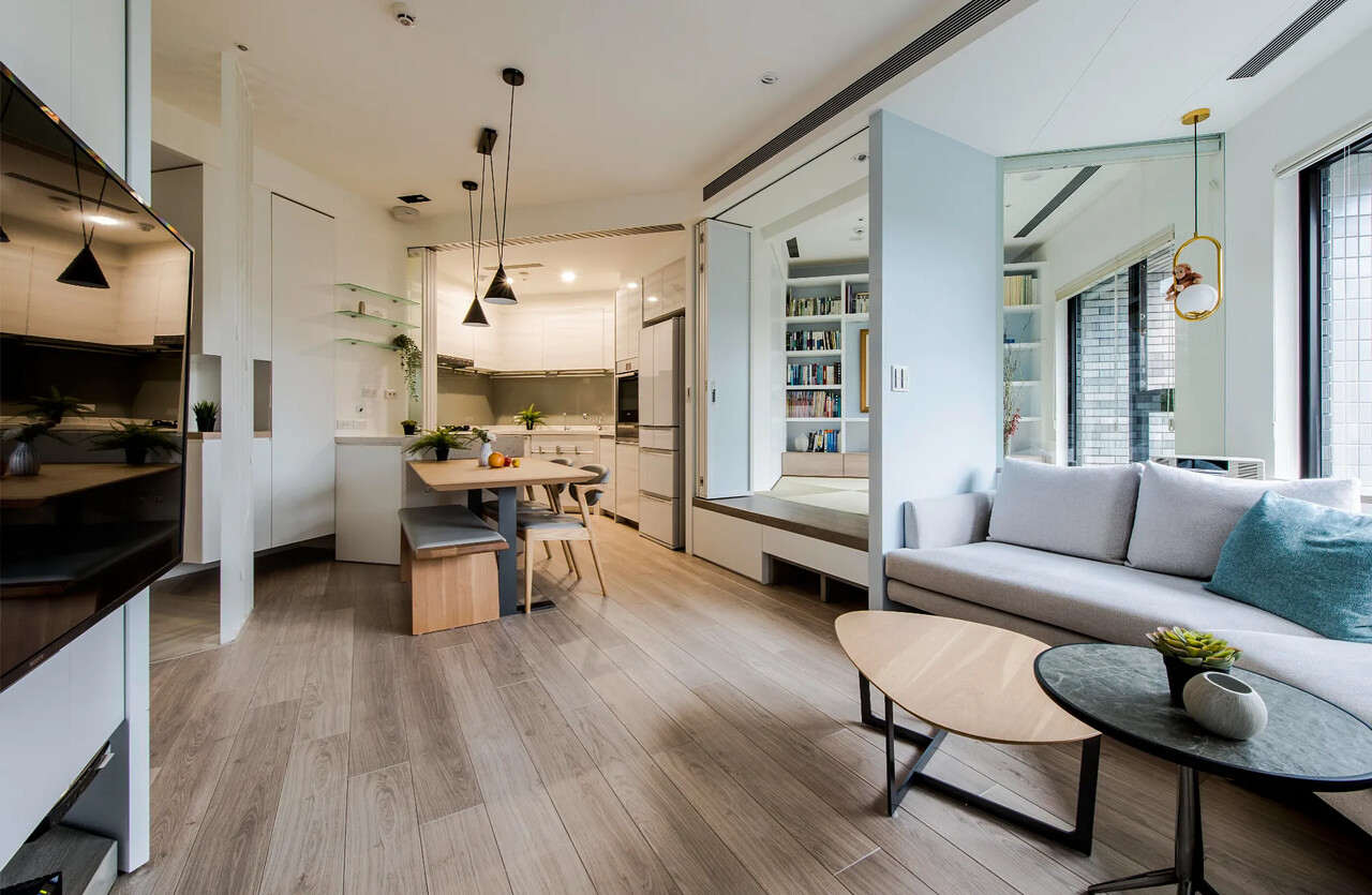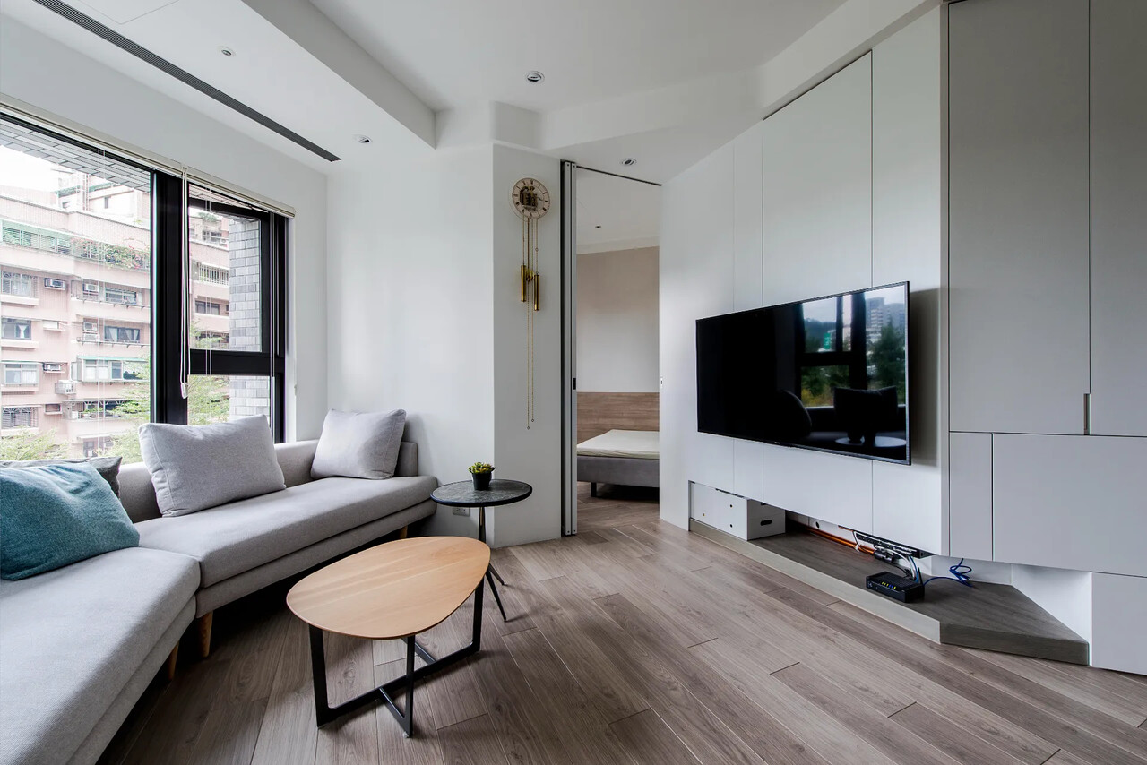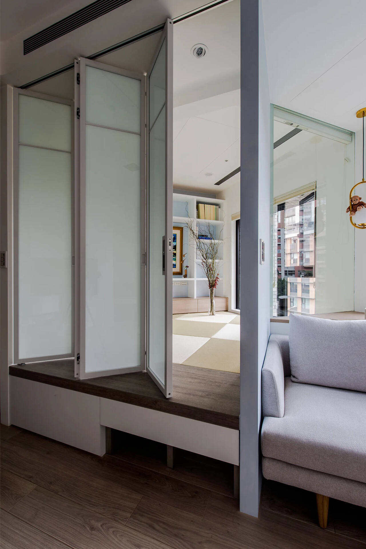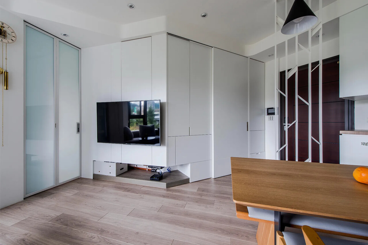 將洗手台、廁所和淋浴空間的機能獨立分離,大幅提升使用效率;並解決廁所在使用中就無法通到後陽台的問題