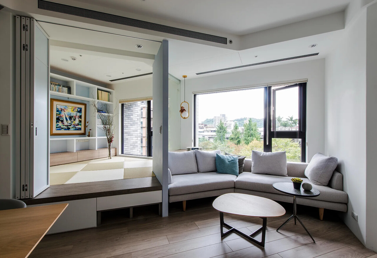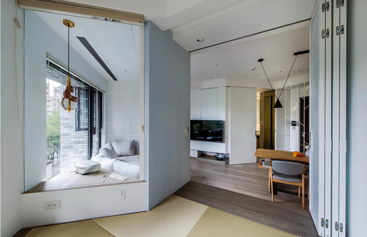 利用角度設計,讓三個窗戶的光線能漫射到室內,視覺上更開闊
