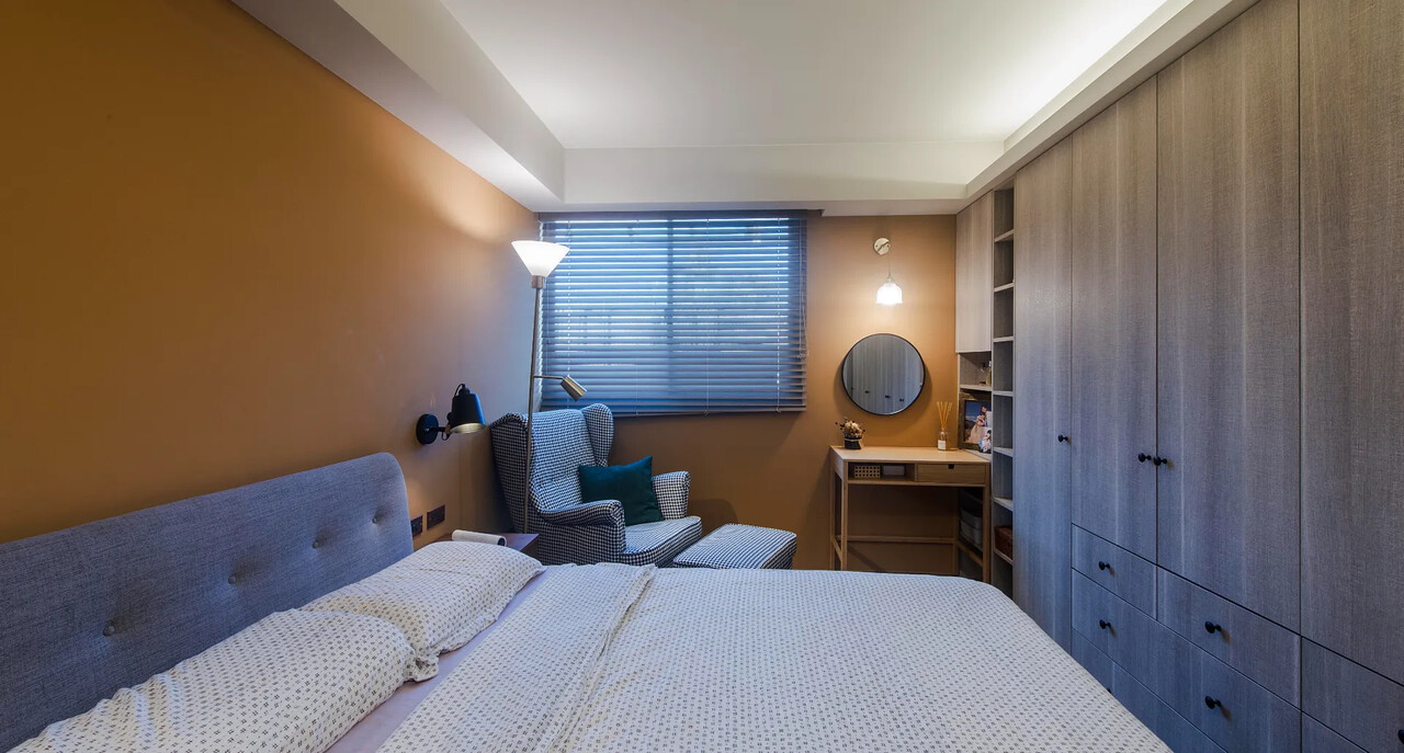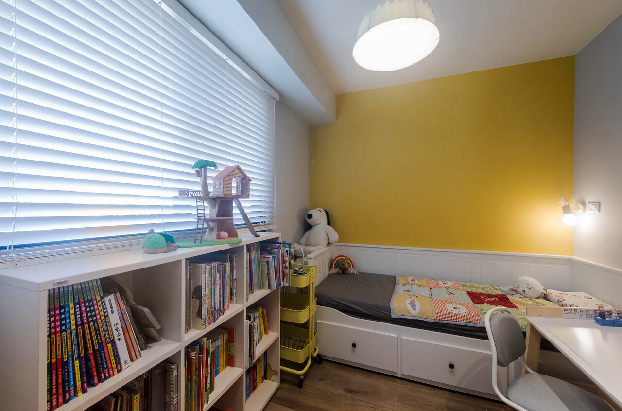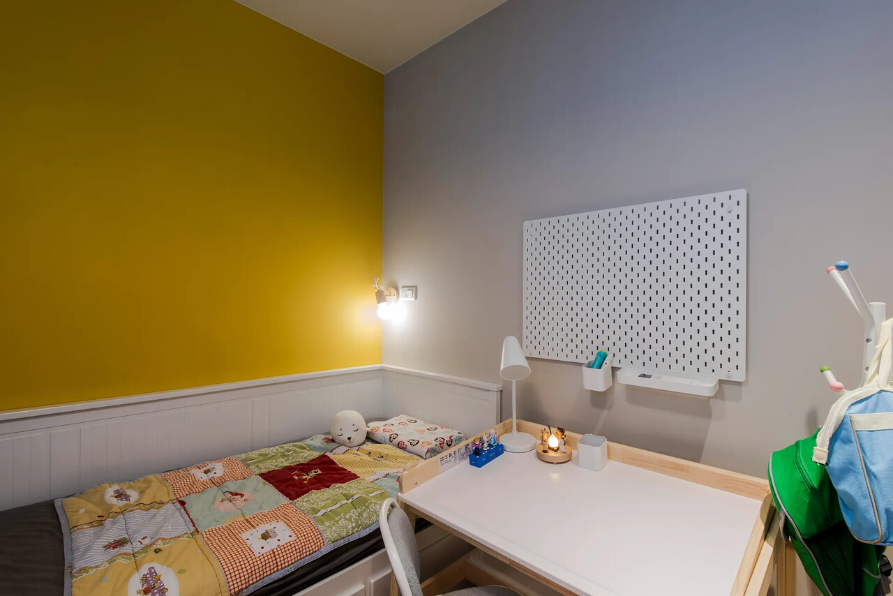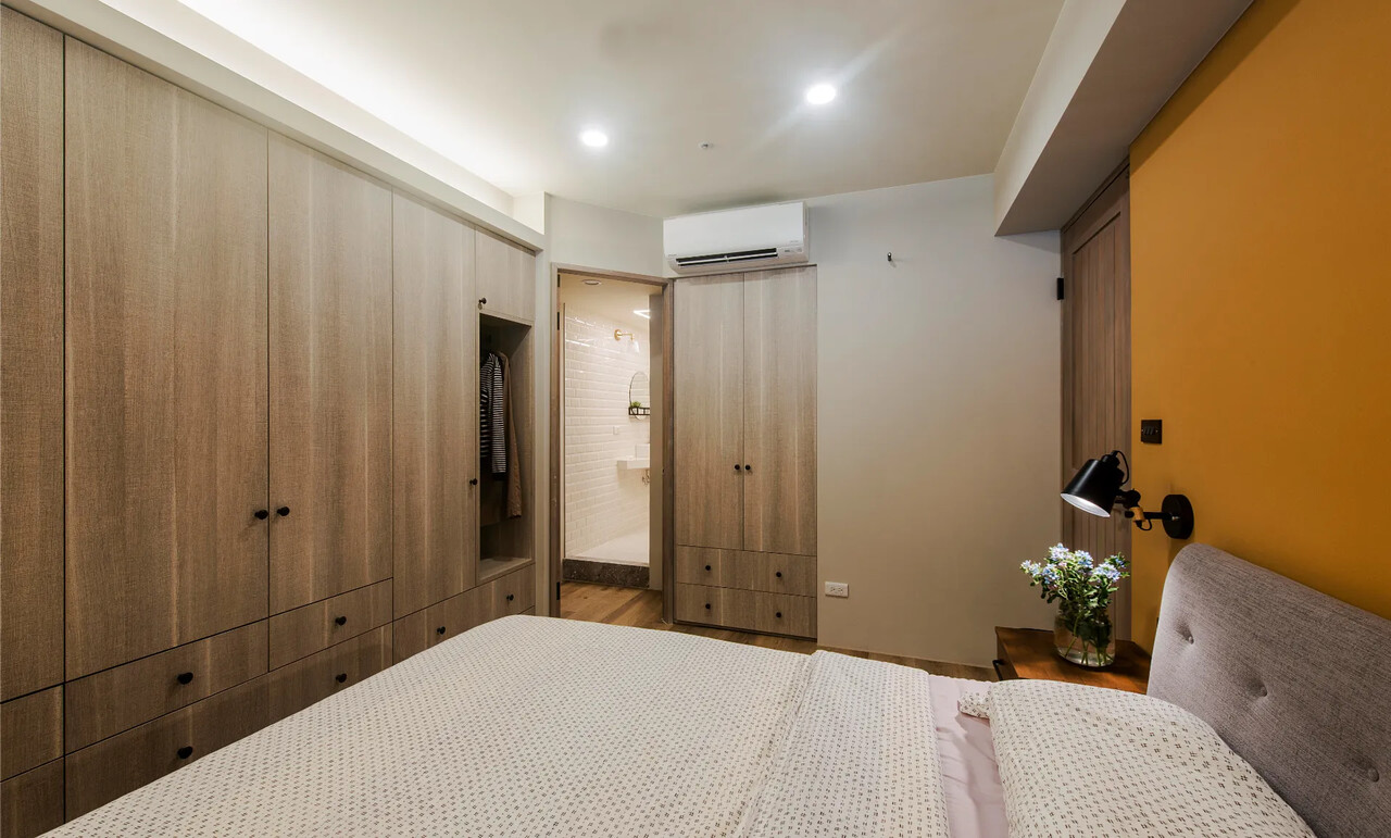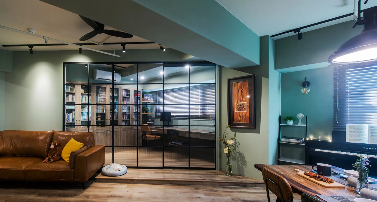 將原格局的臥室A往右移作為書房,改善廚房與餐廳之間的關係,原先走道也已融入餐廳的一部份